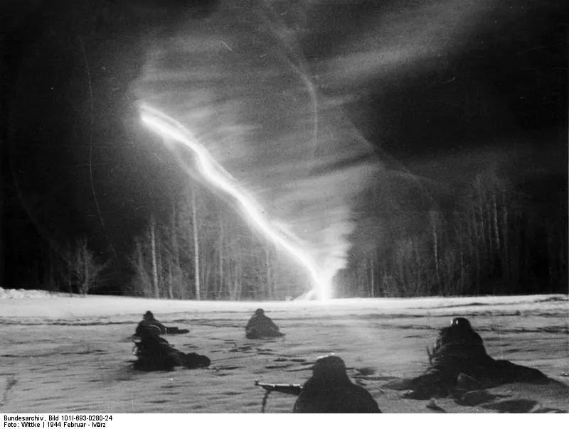 We were manning our positions in a temperature which had dropped to 45° below zero. Some men fainted as the cold struck them, paralysed before they even had a chance to scream. Survival seemed almost impossible. Our hands and faces were coated with engine grease, and when our worn gloves were pulled over this gluey mixture, every gesture became extremely difficult.