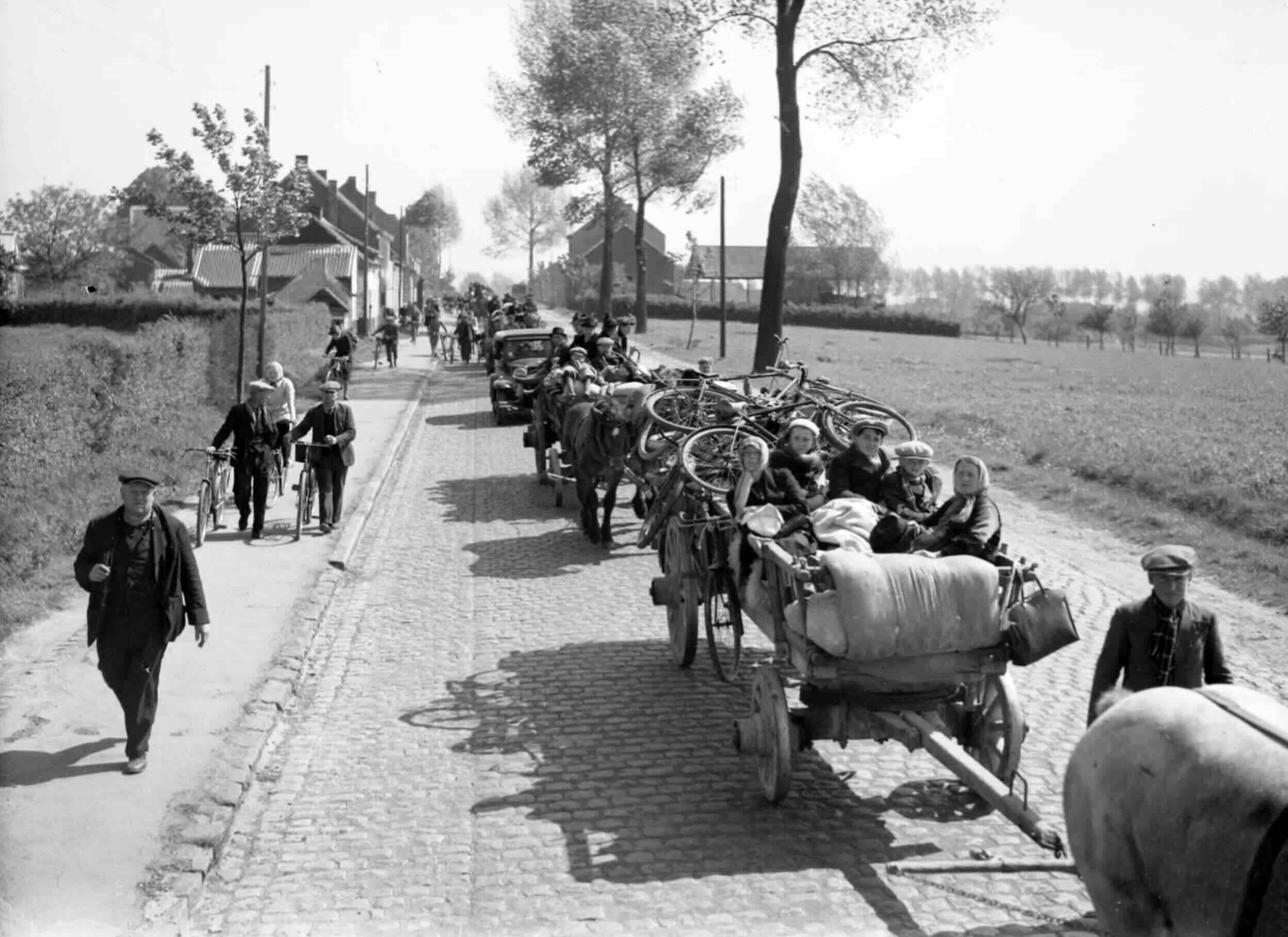 22nd May 1940: British troops retreating in France find themselves surrounded by refugees