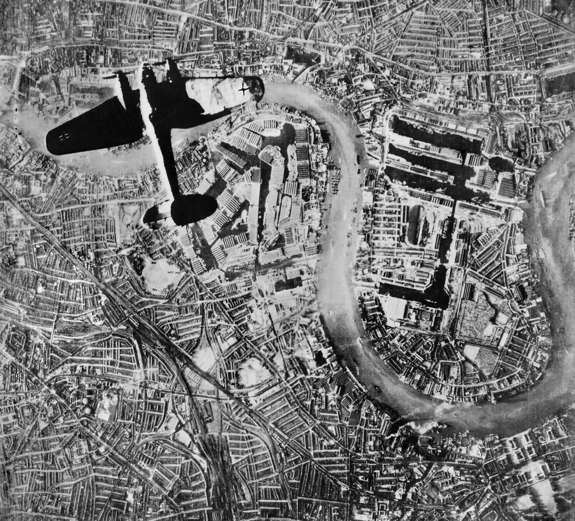 We were flying high cover as we approached London and there we could already see many oil tanks burning with huge clouds of smoke reaching high into the sky. The main targets were the docks which were easy to find on the distinctive U-bend of the Thames.