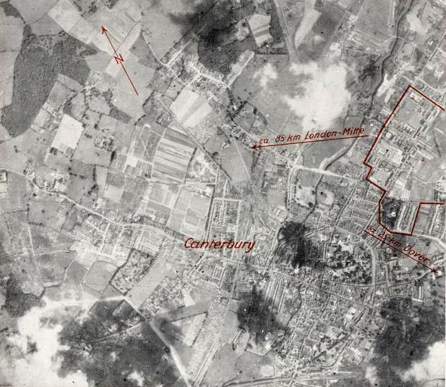 On Friday 11 October, at about 11 o’clock, a group of Messerschmitt fighter bombers pursued by Spitfires dropped their bombs on Canterbury. The attack was a complete surprise. The first bomb scored a direct hit on the fur shop next door to my favourite bookshop. All the people in the furriers were killed; so was Miss Carver. I expect she had been standing in the doorway of her shop having a quiet smoke.