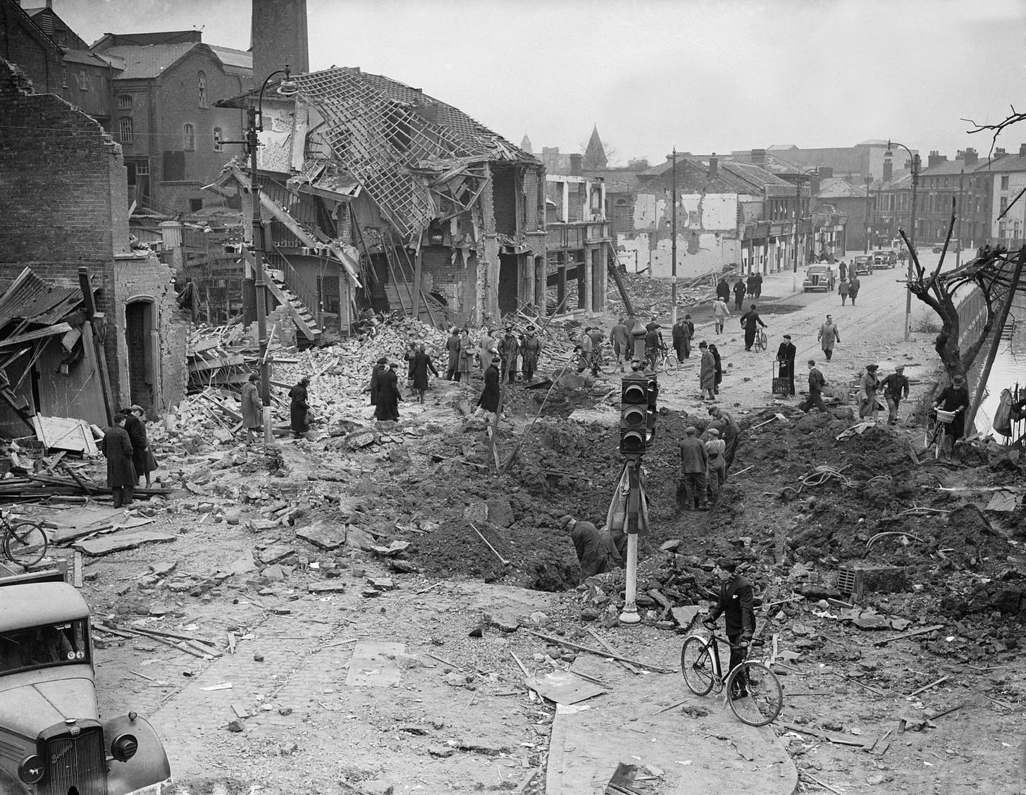 During April 1941, the Luftwaffe conducted some of the most damaging bombing raids of the entire war. Belfast, London, Coventry, Plymouth, Birmingham, Bristol, and Barrow in Furness all suffered more than one raid and severe damage during the month. Everyone in every city in the country had to be prepared to take to the shelters at a moment’s notice. In London, many people simply spent every night in a shelter or down in the Underground. No one could be confident that they would survive the night, and many did not.