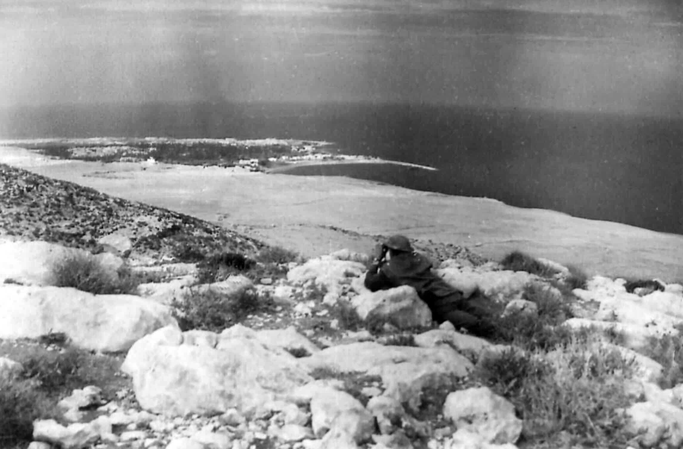 A forward observer surveys the port of Derna, the next fortified Italian position facing the British advance. From here, the best road in the region ran along the coast back to Benghazi