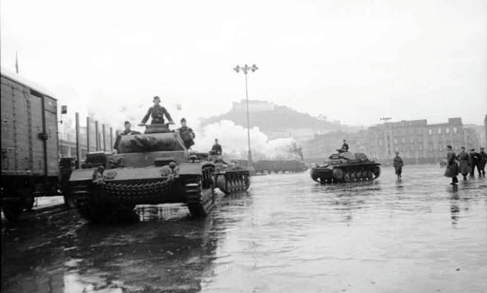 Panzers in Naples, Italy, en route to Libya in North Africa.