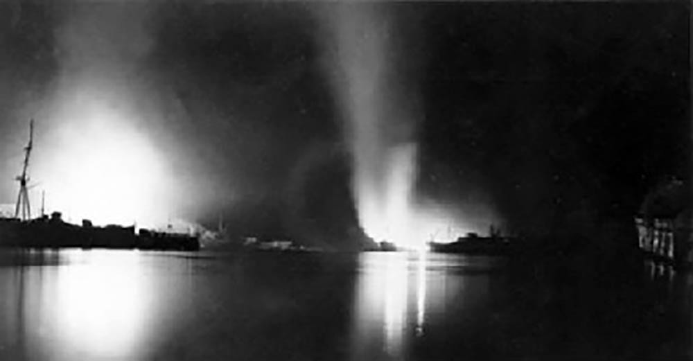 7th April 1941: The Luftwaffe dramatically demonstrate their dominance in the skies over Greece by bombing an ammunition ship