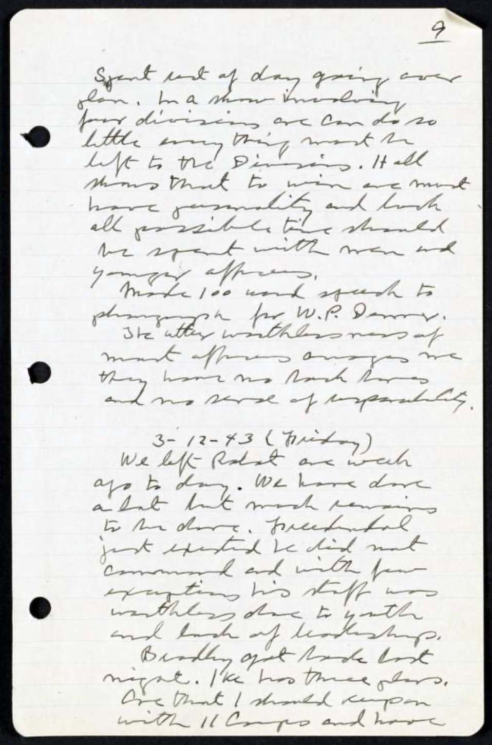 11th March 1943: Promoted in his first week in command of US II Corps, he is candid on the state of the Army that he takes over and his views on Fredendall