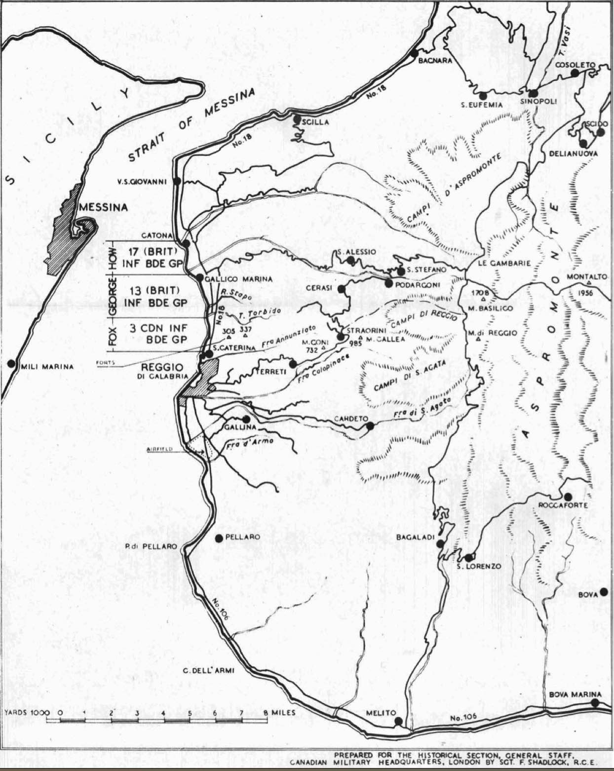 The British, Canadian and American forces had moved swiftly across the island of Sicily and it now seemed inevitable that they would move onto the Italian mainland. It was a short hop across the Strait of Messina to the nearest shore, a route by which the Germans had successfully extricated most of their men under the noses of the Allies. Another force - of US and British troops- was poised for a further assault once this first foothold had been secured.