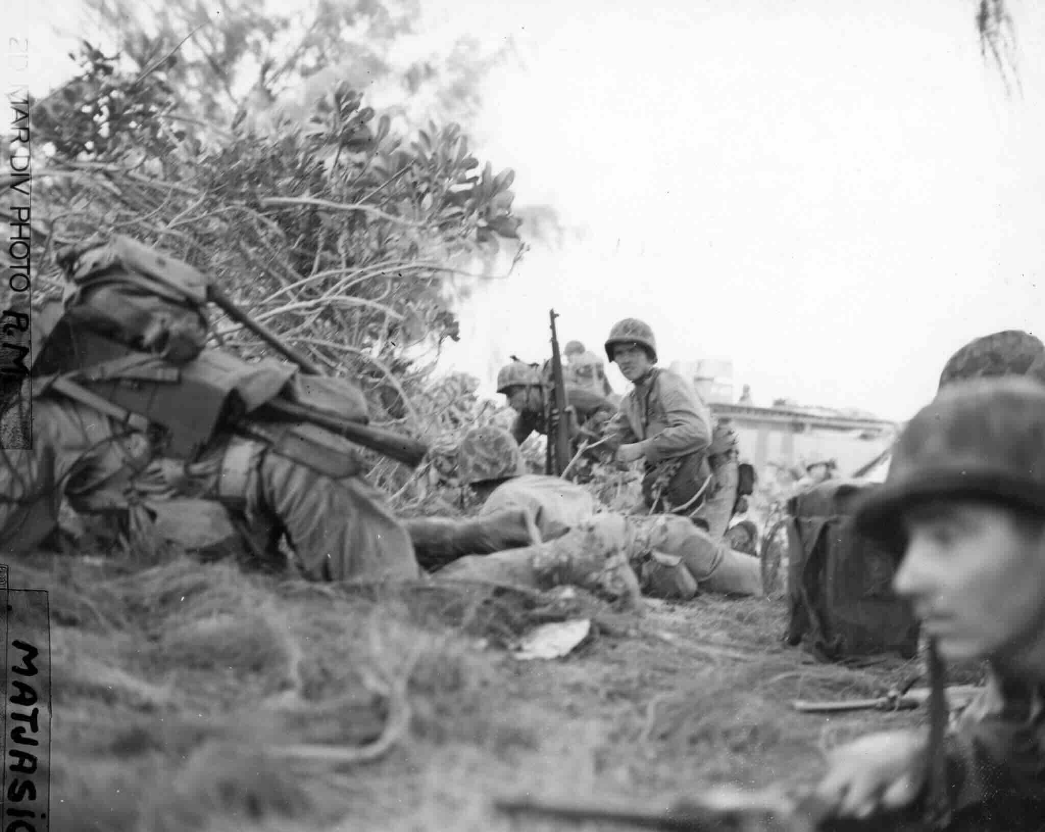 About four o'clock in the morning the speakers in the crowded quarters below decks of each LST (Landing Ship Tank) in the invasion fleet called for muster. It was the alarm for the approaching battle; no one had slept. Both the Marines and Seabees aboard had been looking for this long day.
